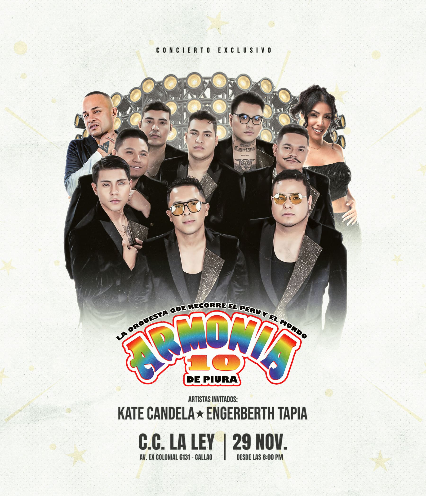 Este sábado 29 de noviembre, la discoteca La Ley se viste de gala para recibir la primera edición de CUMBIA ELEGANTE, una noche pensada para los amantes del ritmo tropical con estilo. Con un show exclusivo de Armonía 10 cargado de sus clásicos y todo su repertorio, ideal para poner a gozar al Callao como solo ellos saben hacerlo.