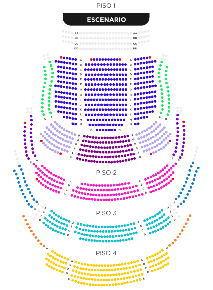 - * Las localidades de espacio de silla de ruedas son de uso exclusivo para usuarios en silla de ruedas temporal o permanente, no se permitirá el ingreso a no usuarios de silla de ruedas en estas localidades. El Gran Teatro Nacional no provee silla de ruedas para estas localidades.