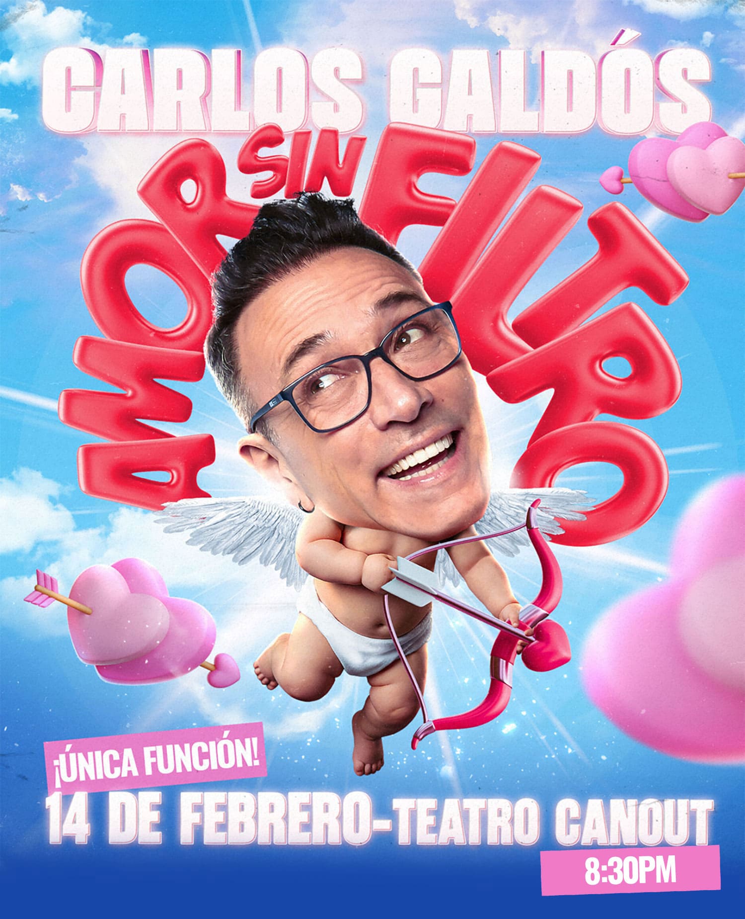 AMOR SIN FILTRO es un espectáculo honesto, provocador y profundamente humano donde Carlos Galdós habla sin maquillaje sobre el amor real: las expectativas, las heridas, el deseo, el miedo a la soledad y las decisiones que tomamos cuando amar duele.