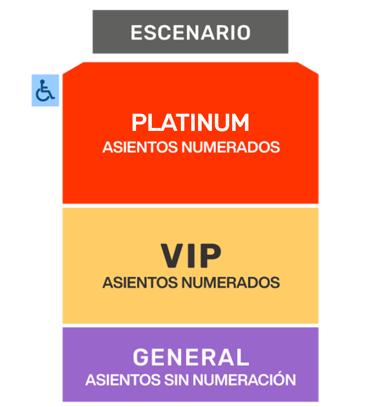 - * La Zona Platinum y Vip cuentan con asientos numerados, la Zona General son asientos sin numerar.