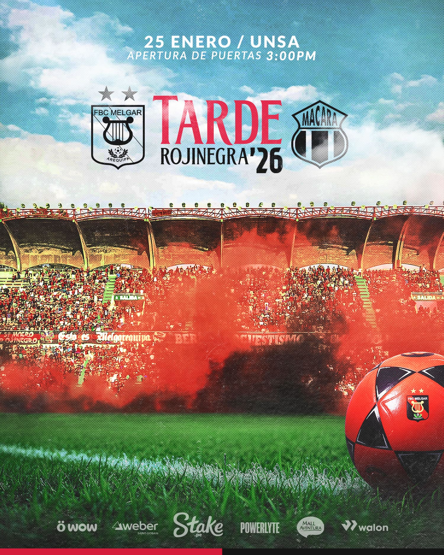 Acompáñanos este 25 de enero en el Estadio Monumental de la UNSA para vivir la Tarde Rojinegra 2026. Sé el primero en conocer al plantel oficial que defenderá nuestros colores esta temporada en una tarde llena de emoción, identidad y puro sentimiento arequipeño.